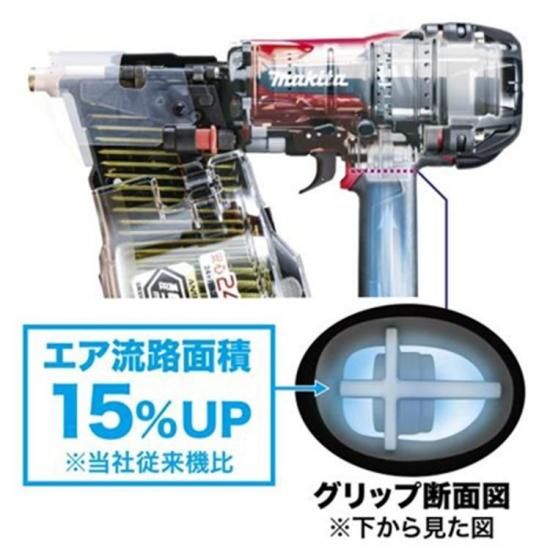 エア流路面積を当社従来機比で15%アップしたことにより、コンパクトながら打込み力は従来機同等を実現。
