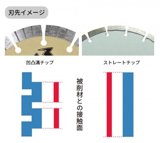※凸凹溝チップは被削材との側面抵抗が少なく 切断スピードがアップ