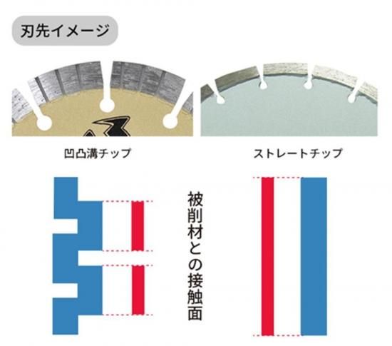 ※凸凹溝チップは被削材との側面抵抗が少なく 切断スピードがアップ