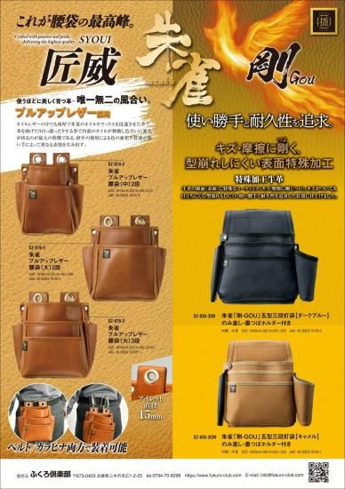 ふくろ倶楽部 朱雀「剛-GOU」 五型三段釘袋 SZ-835-3DB ダークブルー のみ差し・墨つぼホルダー付