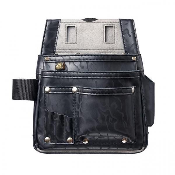 黒革に迷彩柄の型を押す「型押し」という技法を伝説シリーズのレザーに採用!