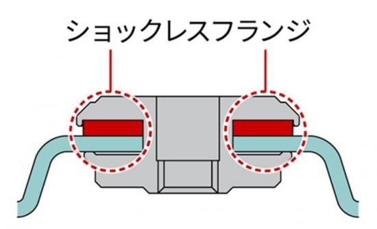 ショックレスフランジが振動を吸収し、振動を軽減。