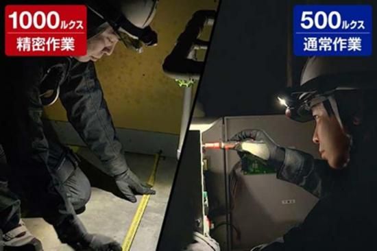 タジマが現場調査で導いた作業にジャストな明るさを各照射モードに割り当て。精密作業には1000ルクス、通常作業には500ルクスでフラッド照射