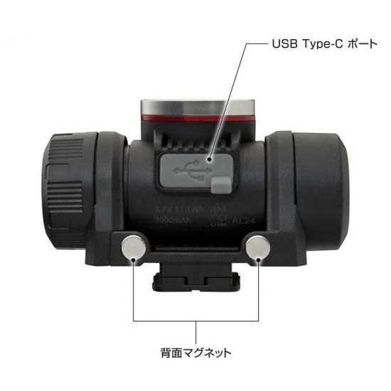 ・連続使用時間:モード1 50lm(130lx):20h、モード2 180lm(500lx):6h、モード3 350lm(1000lx):3h